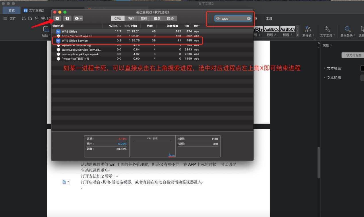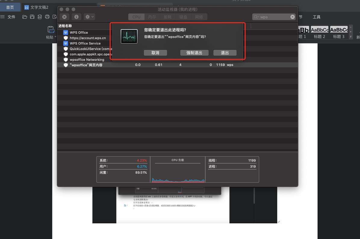 以上是为您收集整理的【 Mac端如何结束WPS进程 】办公软件教程的全部内容,希望文章能够帮你了解办公软件教程 Mac端如何结束WPS进程 。