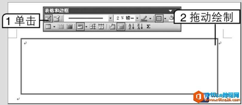 2、单击“表格和边框”工具栏中的“绘制表格”按钮,拖动鼠标指针绘制一个矩形框,作为表格的外边框大小,如图2所示。