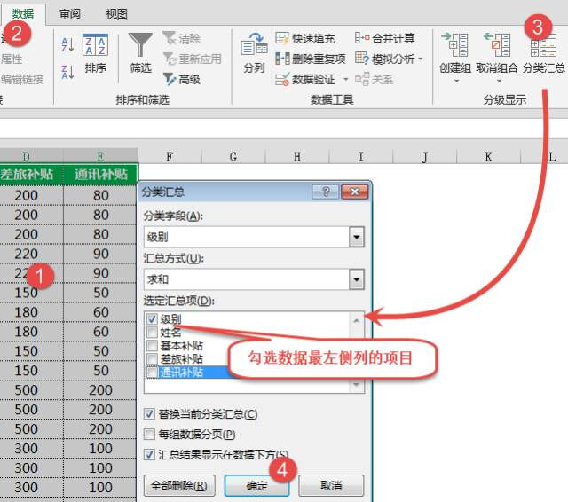 【数据】【分类汇总】【全部删除】