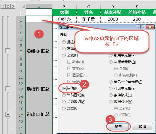 2 定位空单元格
