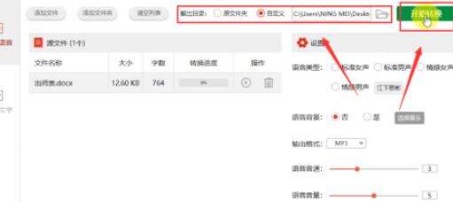5、点击“试听”,试听之后,发现语速太快,可以调节速度