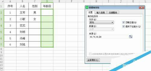 选择数据-有效性,出现此对话框