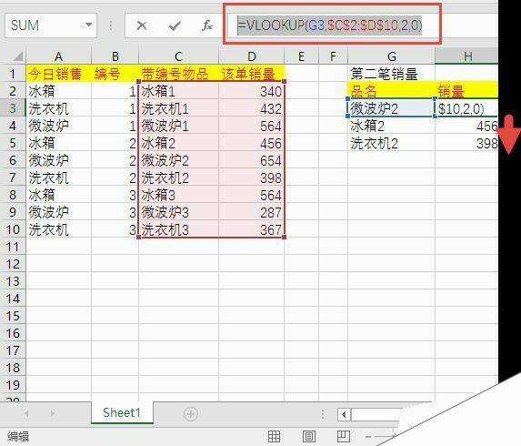 最后,我们在H3单元格中使用VLOOKUP函数,对G列用户提出要求的品名进行统计(用户要第几笔就输入第几笔即可)。H3单元格输入函数: