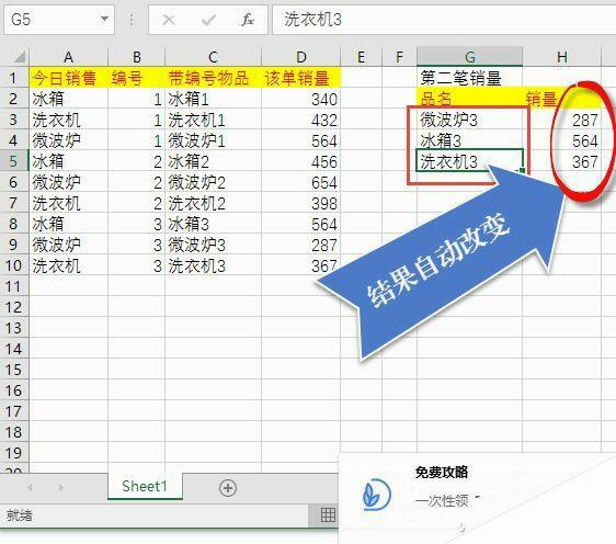那么,如果要找出每种商品的第3单、第4单或其他任何一单的数据,该怎么办?非常容易!只需手动将G列的2改成3或其他数据,H列便自动出现了你需要的数据。