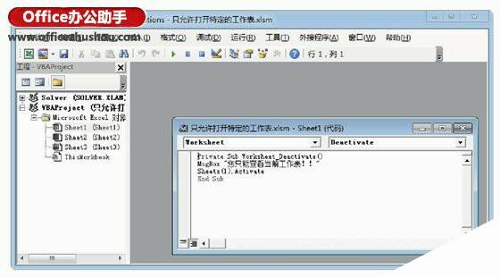 以上是为您收集整理的【通过代码实现只允许打开特定Excel工作表的方法】办公软件教程的全部内容,希望文章能够帮你了解办公软件教程通过代码实现只允许打开特定Excel工作表的方法。
