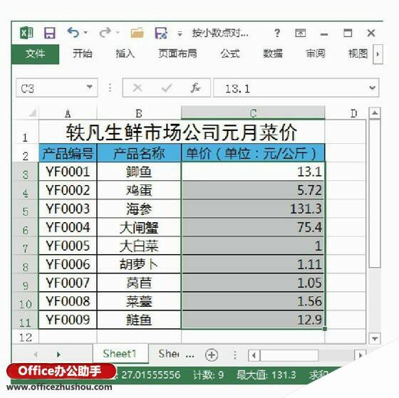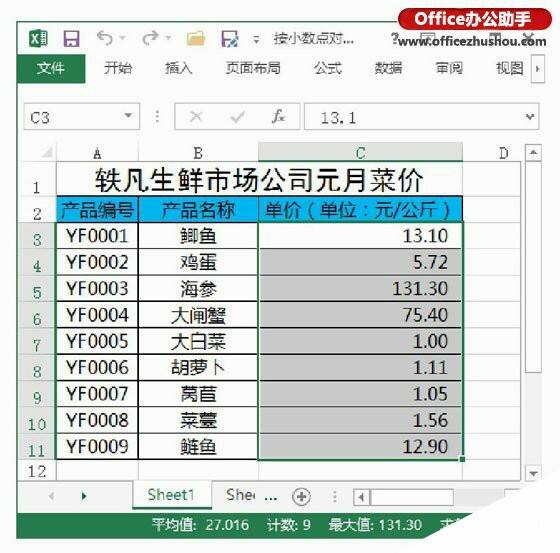 2、单击“确定”按钮关闭“设置单元格格式”对话框,选择单元格区域中的数据将按小数点对齐,如图3所示。