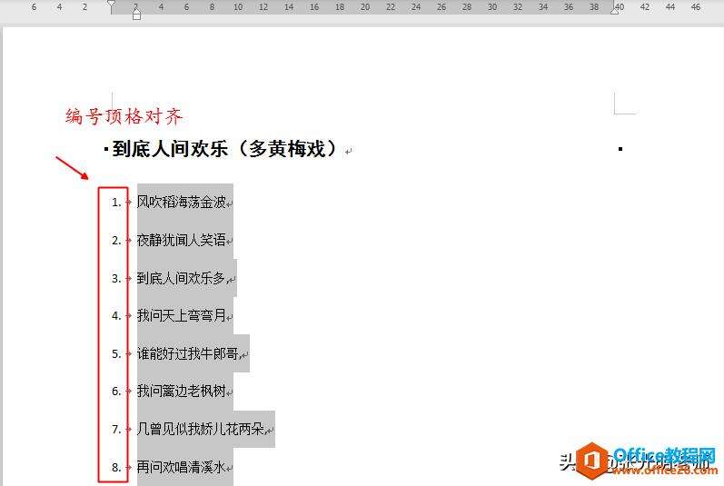 我们发现:编号是顶格对齐