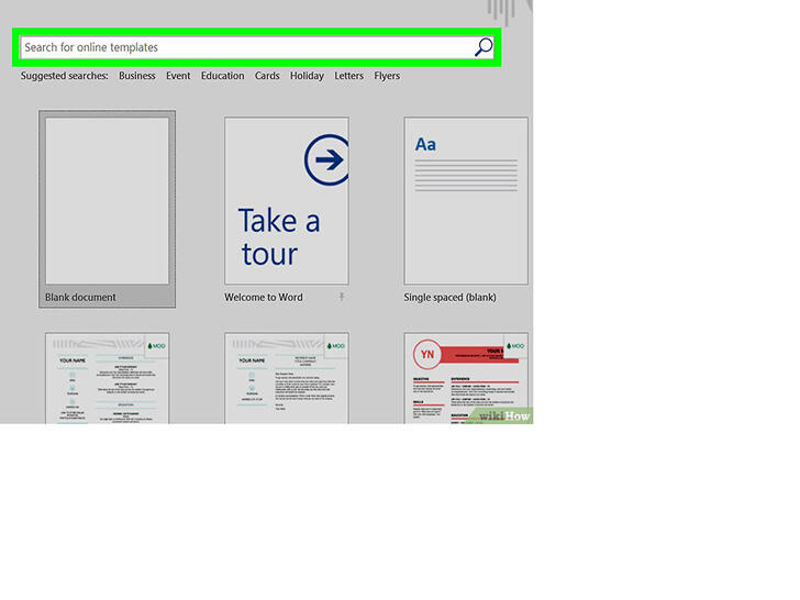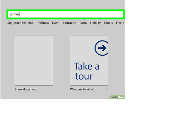 在搜索栏中输入横幅,然后按↵ Enter。这样就会在Microsoft模板数据库中搜索横幅模板。