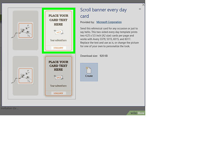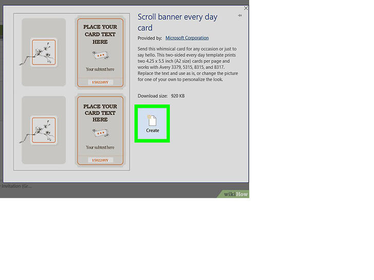 点击创建。它在模板预览的右侧。这样就会打开Microsoft Word中的模板。