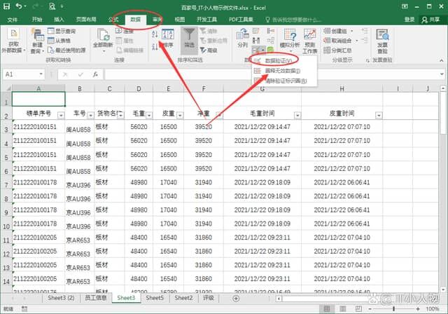2、依次点击菜单项【数据】-【数据验证】,打开“数据验证”对话框;