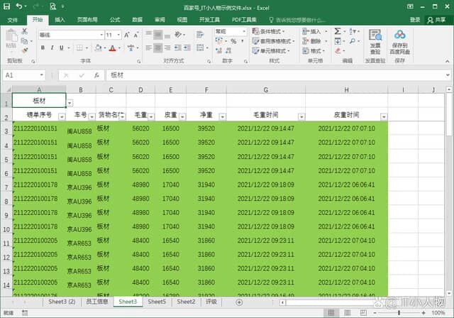 6、在下拉选项中选择,如“板材”,为板材的行就会显示颜色了。