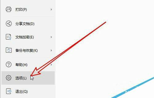 在打开的文件下拉菜单中我们点击“选项”的菜单项。