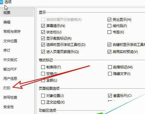 接着我们在打开的wps2019的选项窗口中,我们点击左侧边栏的“打印”的菜单项。