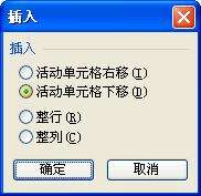 打开单元格插入对话框,可以看到下图中的四个选项;