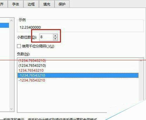 5、在右边的方框中,找到“小数位数”,并且后面还有一个调整大小的方框,将里面的数字适当调大一点。比如8