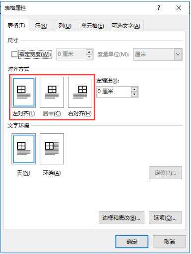 (2)在表格上右击,在弹出的菜单中选择“表格属性”命令,打开“表格属性”对话框,在“表格”选项卡下的“对齐方式”栏中进行设置。