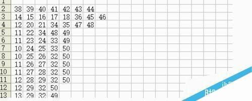 2、在“数据”表格里存放数据,共38行,这是1-13行的数据。