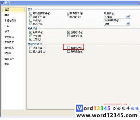 如果是“垂直标尺”隐藏了,怎么找回来呢?在WPS文档左上角点击“选项”,如图: