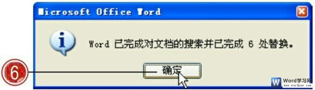 6、Word 自动对当前文档进行查找,并将查找到的符合条件的文本内容进行替换,替换完成后弹出提示对话框,提示用户替换的结果。
