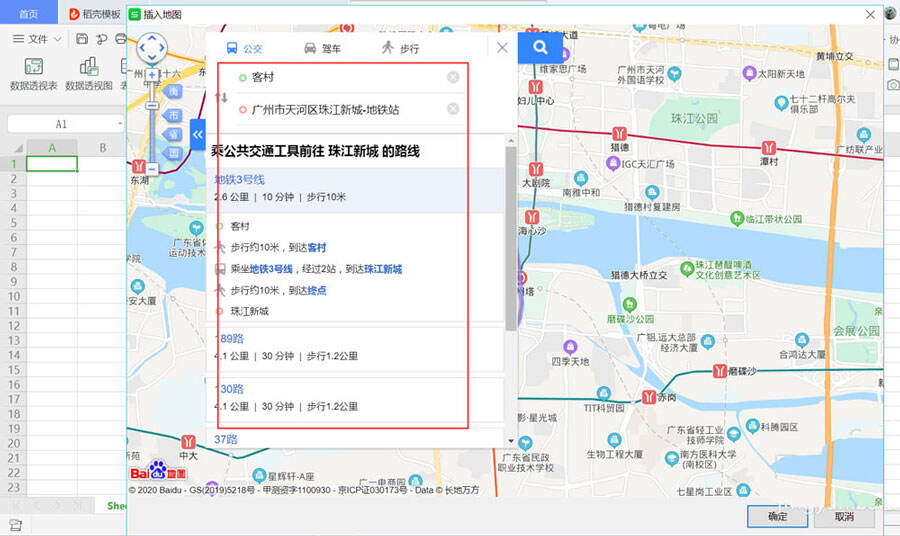 路线图搜索出来后,点击确定,即可将该路线图插入到excel文档中了,详情如下。