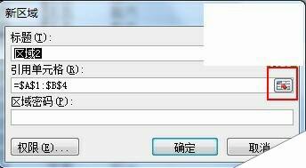 3、在弹出的“新区域”页面框中找到“引用单元格”文本框右边的“拾取器”按钮,选择可被编辑修改的单元格后按“确定”按钮。