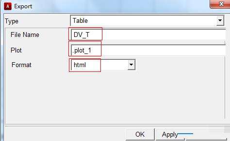 单击File/Export/Table,打开对话框,如图,输入文件名、选择曲线、选择输出格式,点击OK,输出表格。