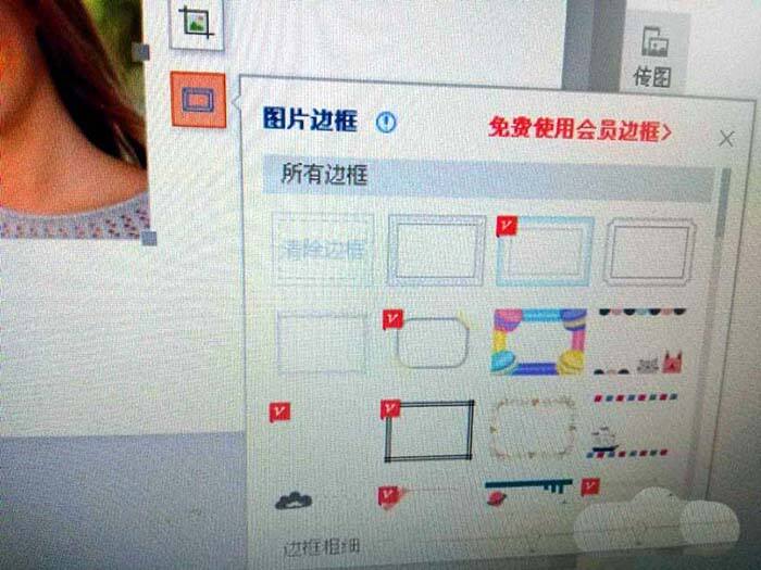 5、在图片边框对话框中选择边框的样式,单击边框图片自动加载边框,边框加载好后可以调节边框的粗细,向“+”的方向调节,边框变粗;向“-””的方向调节,边框变细。