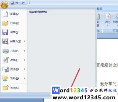 1、用鼠标左键单击左上角的“Office 按钮”(图中红色箭头所指)