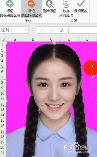 4、根据上方的标记要保留区域和标记要删除的区域,来调整你证件照的相关操作。然后确定更改,最后回到开始菜单,点击填充,可以修改你要的背景颜色。