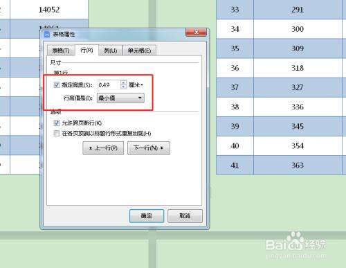 4、对于弹出的对话框,点击其中的行高。