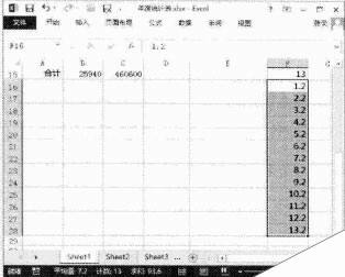 (2)在该列接下来的2个单元格中分别输人数字“1.2”和“2.2”,如图3所示。 然后使用和步骤(1)相同的方法向下填充数据,如图4所示。