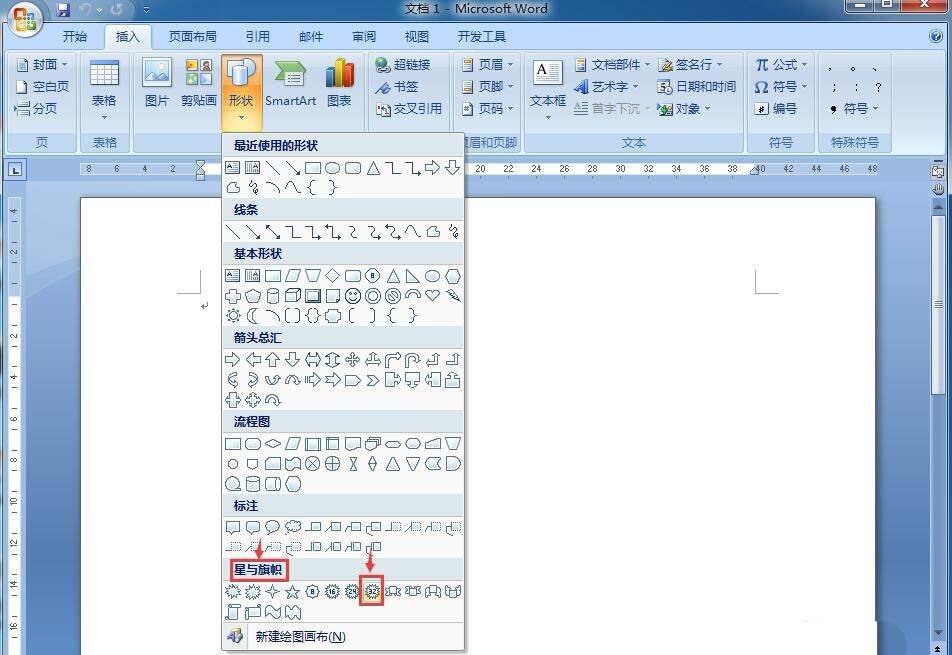 4、在星与旗帜中找到并点击三十二角星;