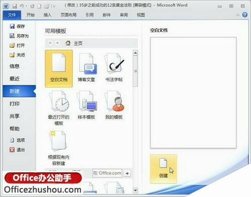 以上是为您收集整理的【在Word 2010中如何新建空白文档】办公软件教程的全部内容,希望文章能够帮你了解办公软件教程在Word 2010中如何新建空白文档。