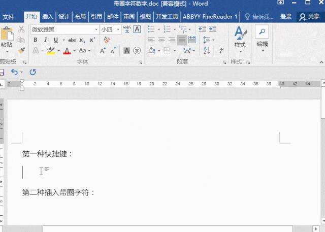 上图演示的是带圈字符输入的两种技巧,一种是直接用快捷键,一种是用插入字符的方法实现。