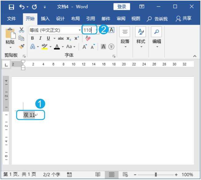 Step02 查看效果。完成输入后,按【Enter】键确认,即可应用设置的字号大小,效果如下图所示。