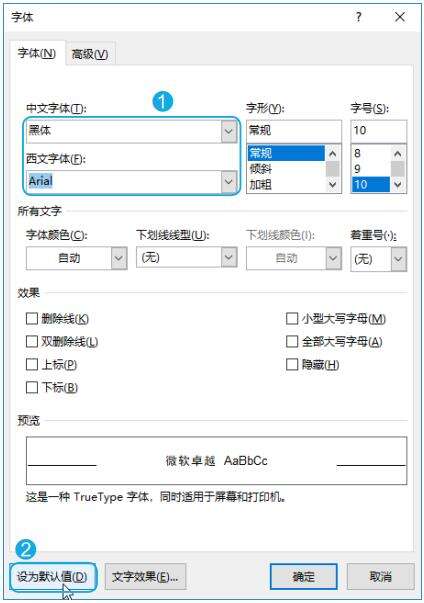 2、单独设置中文字体和西文字体