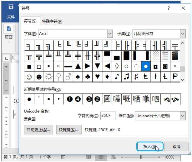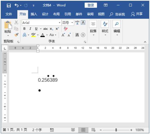 Step01 插入黑色圆点。在空白文档中输入一个小数点“0.256389”,然后通过【符号】对话框在文档中插入黑色圆点【•】,如下图所示。