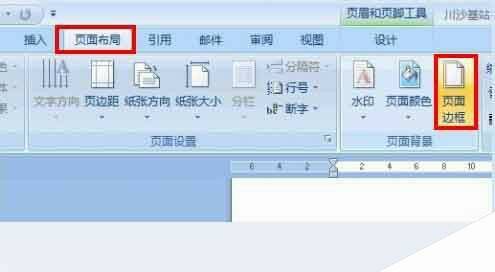 3、点击菜单栏“页面布局”中的“页面边框”,打开边框设置选项卡。