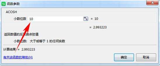 此时,便求出了数字1的反双曲余弦值。同样的操作方式便可求出数字10的反双曲余弦值: