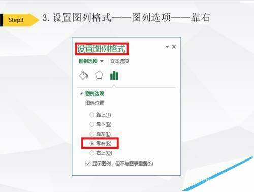 2、设置图列格式——图列选项——靠右。删除坐标轴,底色图列等不需要的项。