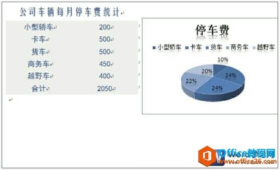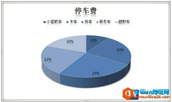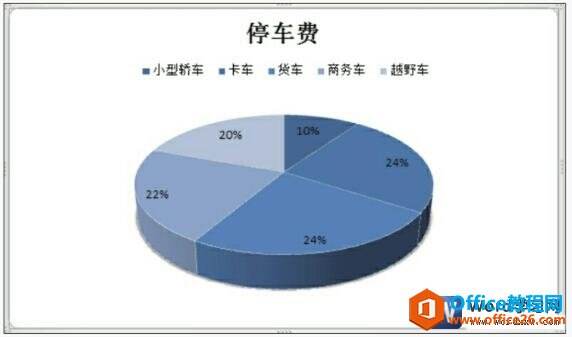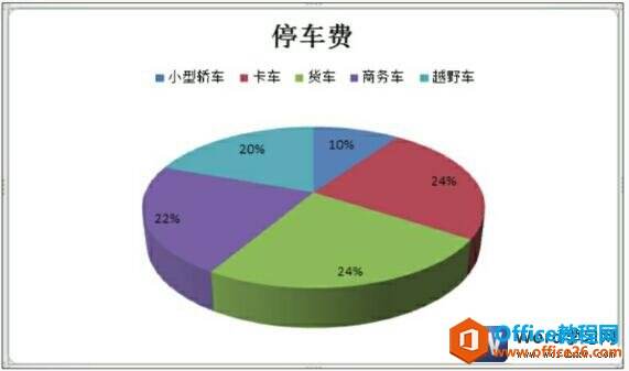 改变了图表的布局后,在图表中显示出了每种车型停车费所占的百分比,即可看出每种车辆所缴纳的停车费所占总金额的比例,如下图2所示。