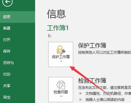 切换到文件菜单,在选择信息栏中单击【保护工作簿】