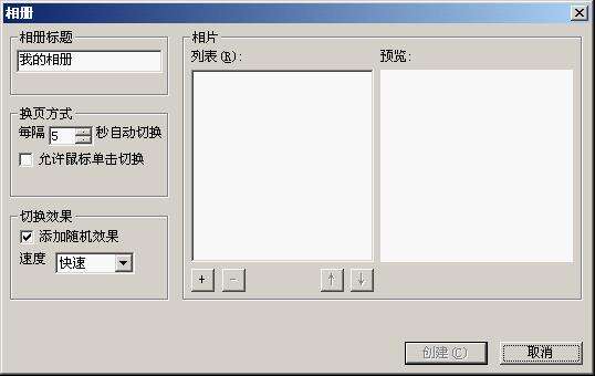 5、设置“建立相册”中的换页方式和效果后,单击“创建”按钮。保存后新的教学课件制作完毕。