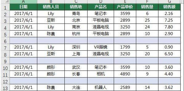 同样是案例1中的数据表,我们采用另一种方法来删掉多余的空行。