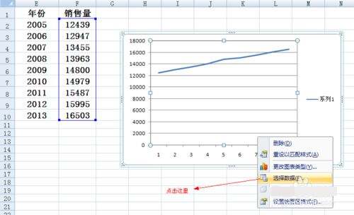 在图上右键单击,在菜单中点击选择数据。
