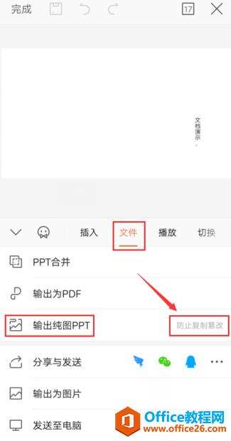 第三步,找到文件一栏,在输出纯图PPT的左边,可以看到【防止复制篡改】,点击这个图表:
