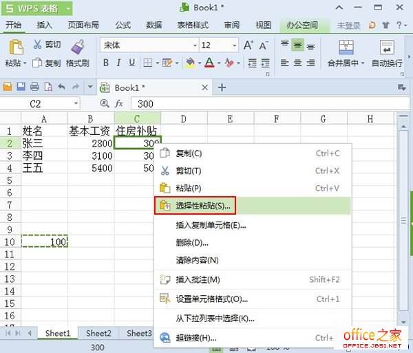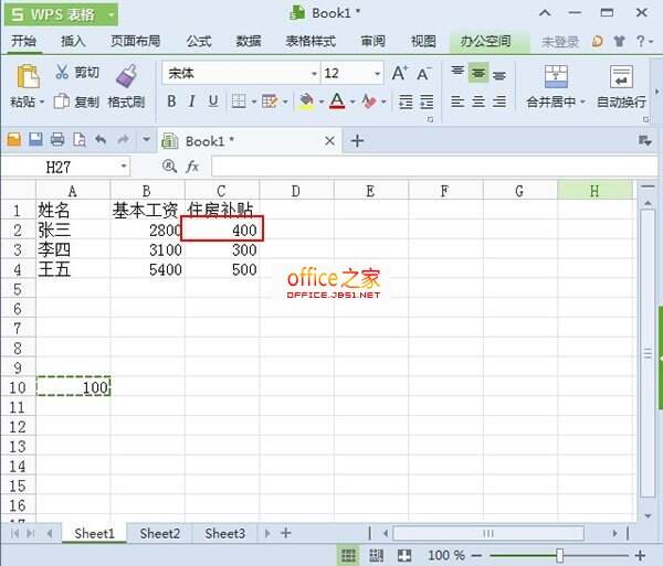 这样,张三的住房补贴将增加100。对于批处理操作,在相同的步骤中选择所有单元格。