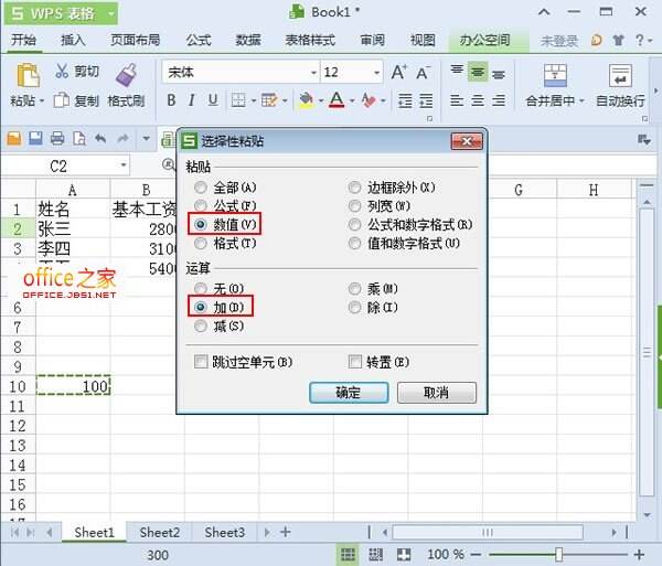 使用粘贴特殊功能批量为WPS2013表格数据添加固定值