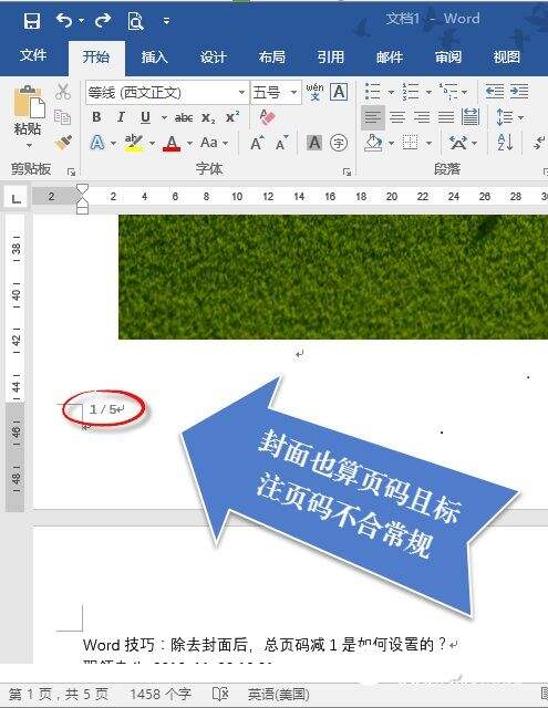 删除封面页码之后,再回到正文第1页末端查看,发现页码依旧完好存在且是从1算起的,符合要求。