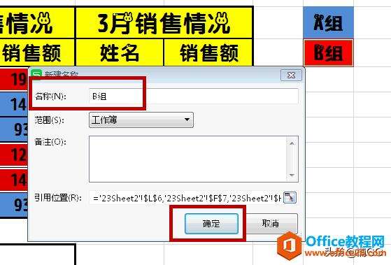 此处的“B组”就是那些被指定背景色单元格的“名称”